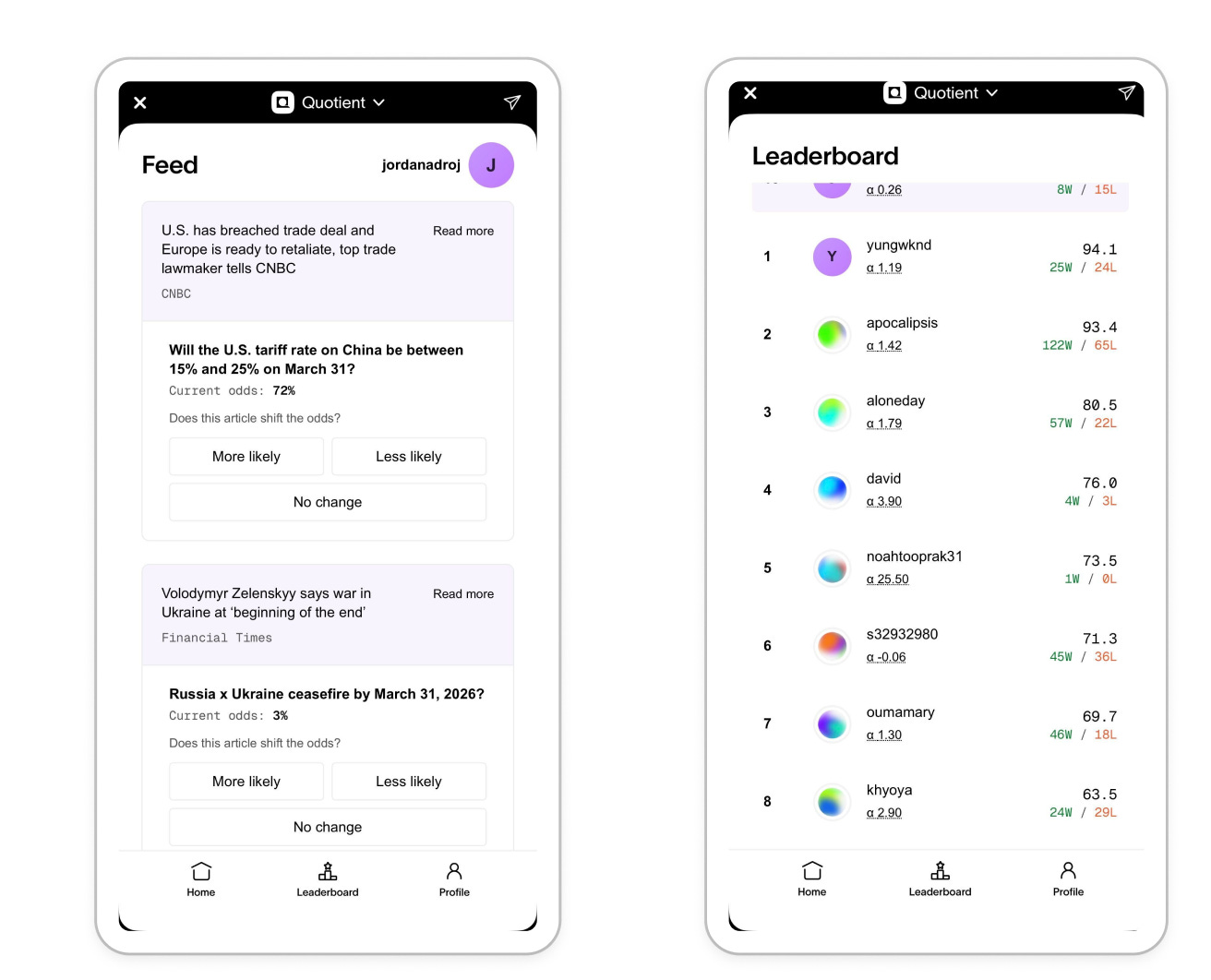 Quotient is a forecasting platform that helps investors anticipate how global events will impact financial markets, starting with prediction markets.